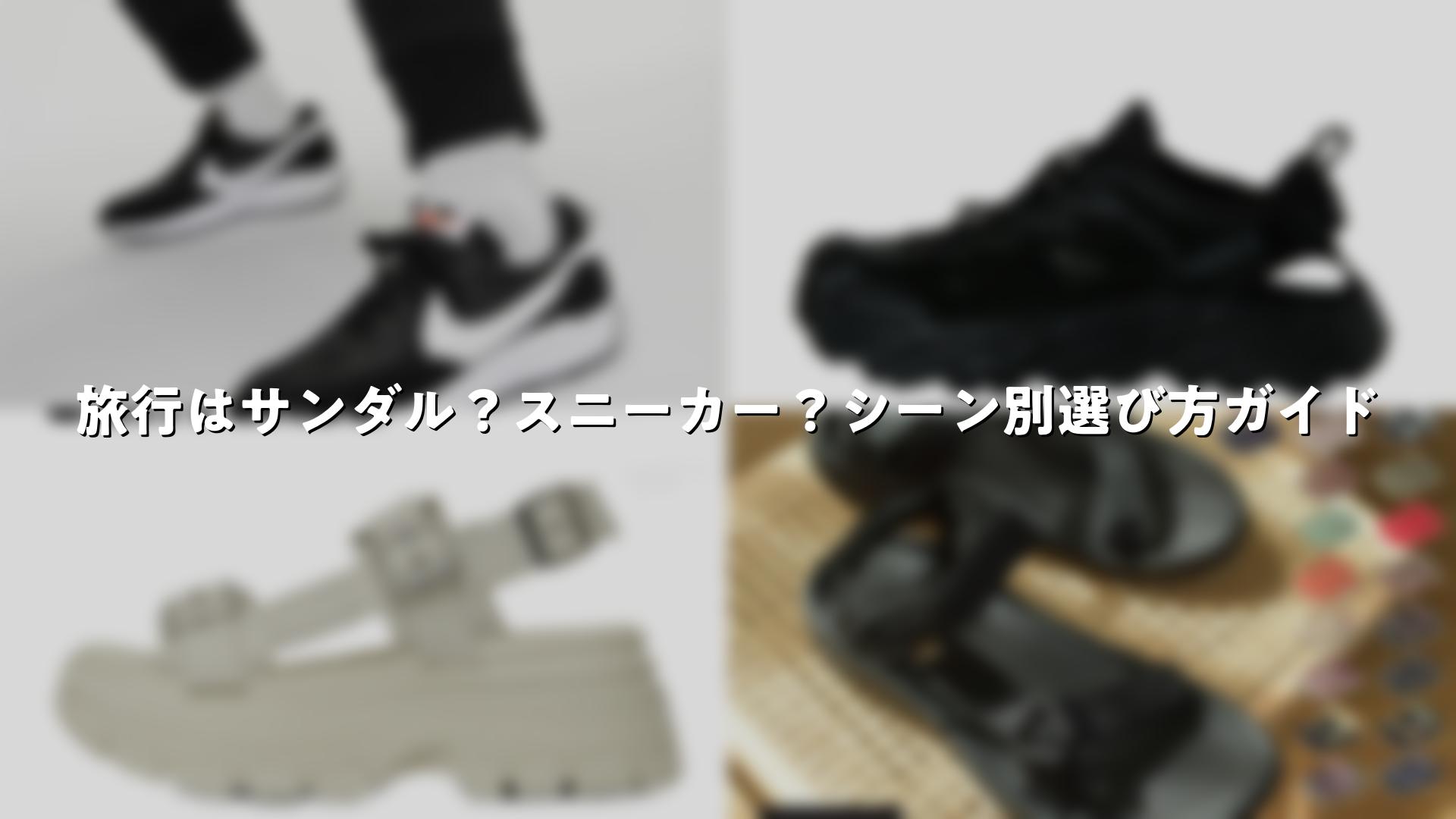 スニーカーは全体的な安定感で勝り、サンダルは涼しさと速乾で優位。スニーカーサンダルは両者のいいとこ取りで、NIKEエアマックスココのようなモデルが楽天で人気。旅行日数で選ぶと、短めならスニーカー1足、長めなら2足持ちがおすすめです。